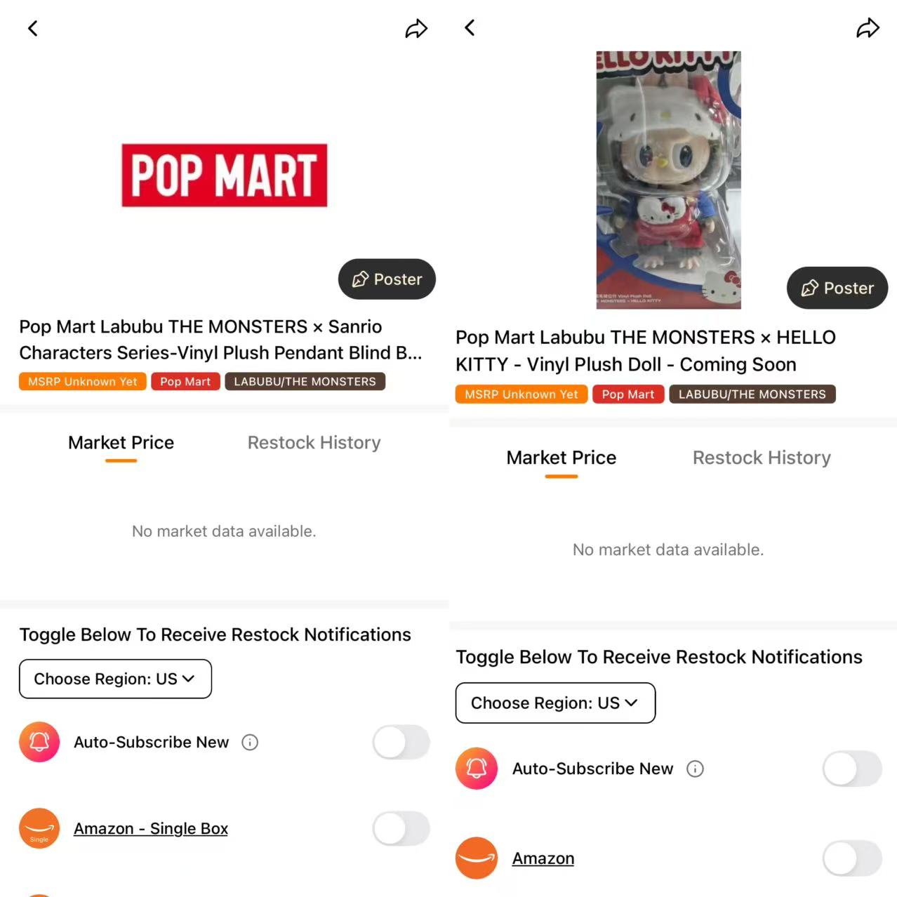 While these items have not been officially announced by POP MART, early product data suggests that a Labubu x Hello Kitty Vinyl Plush Doll and a THE MONSTERS x Sanrio Characters Series Vinyl Plush Pendant Blind Box could be in development.